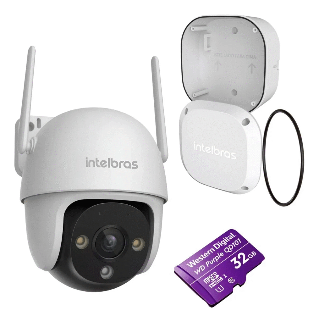 Cartão MicroSD Local: A opção mais econômica e sem mensalidades. A maioria dos modelos suporta cartões de 64GB a 128GB, suficientes para dias ou semanas de gravação. Lembre-se de adquirir o cartão separadamente.